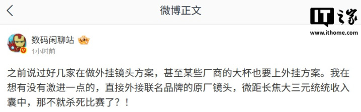 IT之家8月22日消息,博主@数码闲聊站今日发文透露,好几家手机厂商在做外挂镜头方案,甚至某些厂商的大杯也要上外挂方案。值得一提的是深圳股票配资平台,博主此次爆料提及的是“大杯”机型,而非“超大杯”,这意味着外挂镜头有望成为新旗舰机下一个发力点,即便是次旗舰也能通过“物理外挂”拥有更强的影像表现。